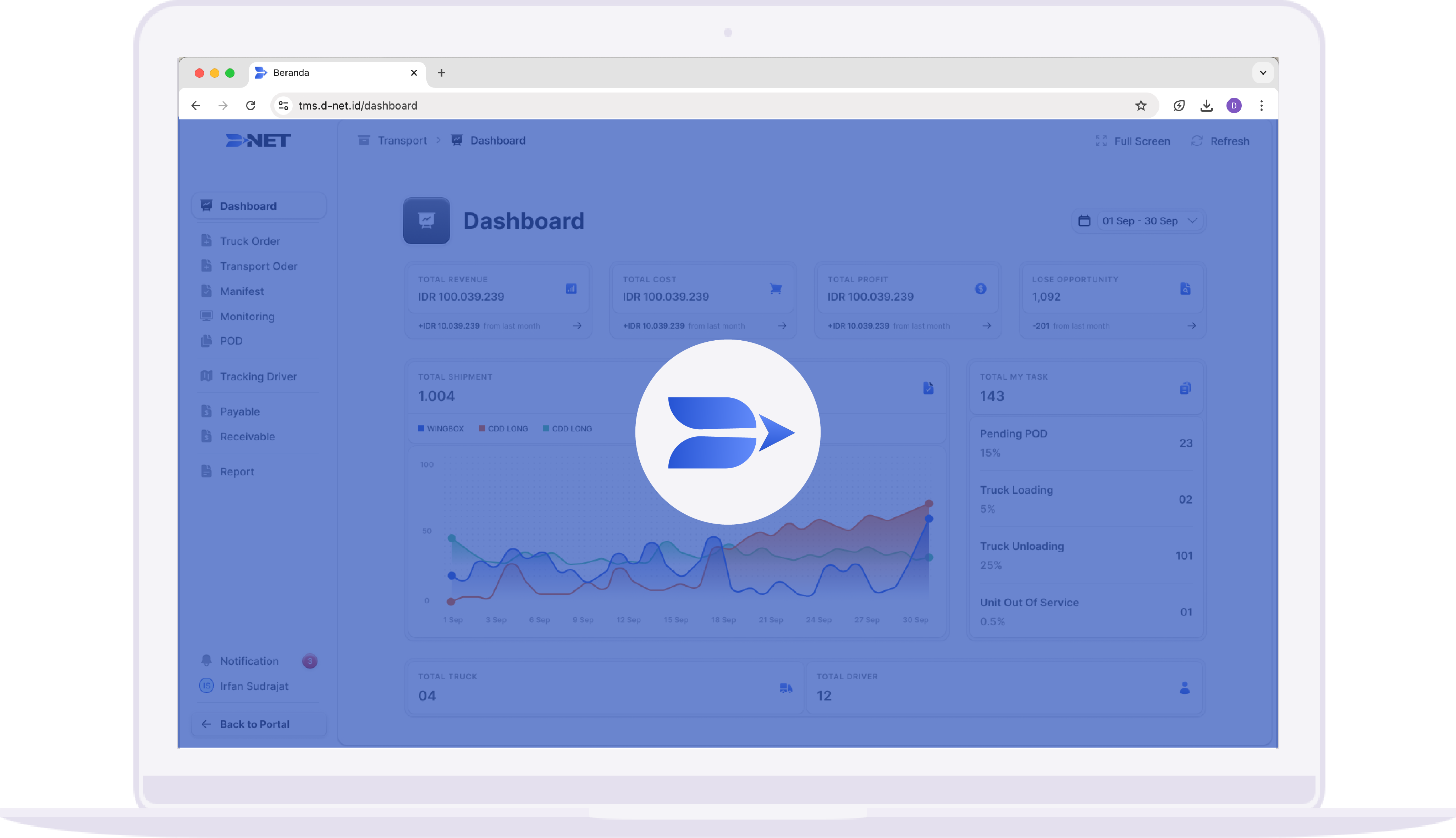 This TMS D-Net application involves planning, operator coordination, distribution procedures, real time tracking until the goods are received by the client.